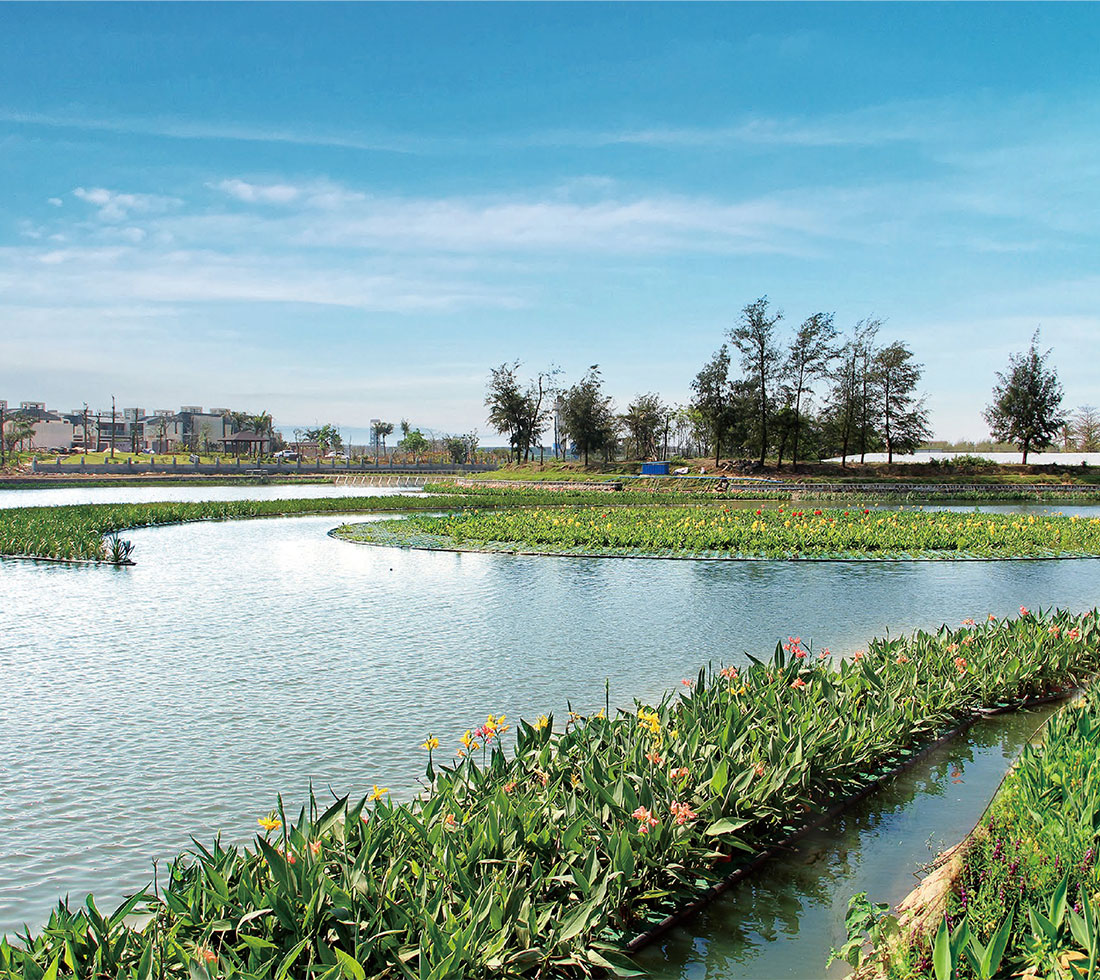 福创溪-大排沟项目的大排沟段直经桂林洋热带农业园,汇入福创溪下游,是桂林洋水系主要的入海口,该项目应用了公司自主研发的载体固化微生物技术等多项专有技术,使水体指标优于《地表水环境质量标准》(GB3838-2002)V 类标准,满足防洪排涝要求,恢复水体生态,营造优美滨水景观。